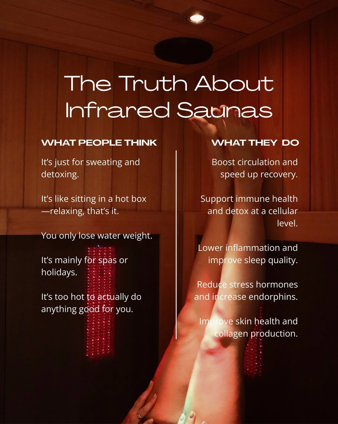 Experience ultimate regeneration in your own private rooms, featuring invigorating ice baths, red light therapy beds, cutting-edge PEMF mats, and detoxifying infrared saunas.