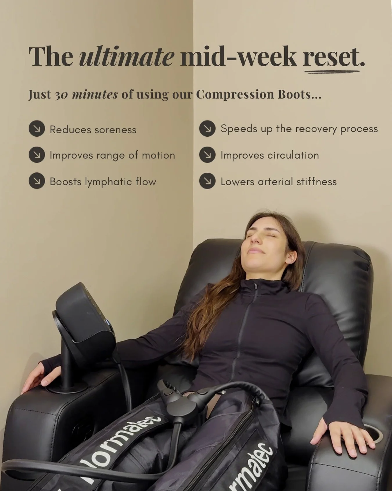 Whether you're an athlete in training, seeking a natural healing approach, or just in need of deep relaxation - our modern and discreet recovery studio is your sanctuary.