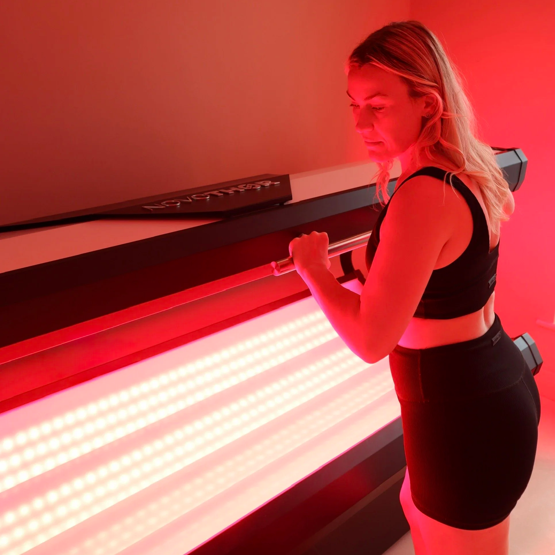 Full-body NovoTHOR red light therapy session at ReGen Rooms—clinic-grade photobiomodulation for recovery, joints, skin and sleep.